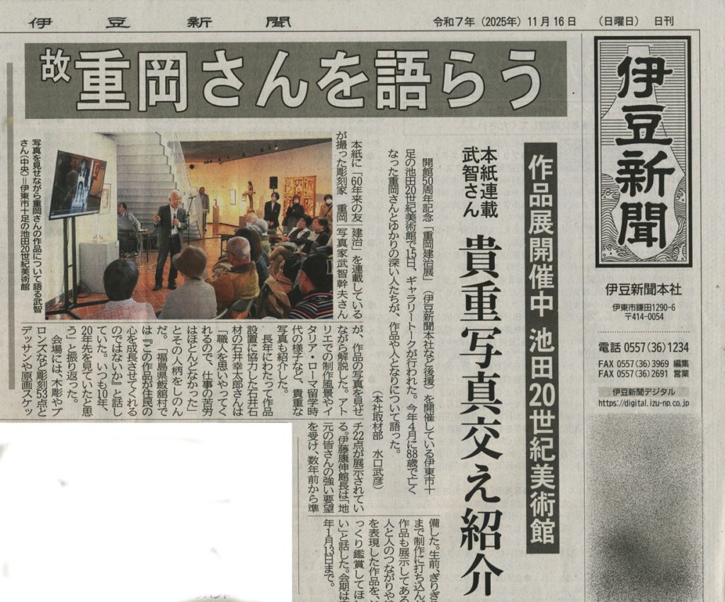 11月15日に池田20世紀美術館にて現在開催されている「重岡建治展」でギャラリートークが行われ、私も少しだけお話をさせていただきました。