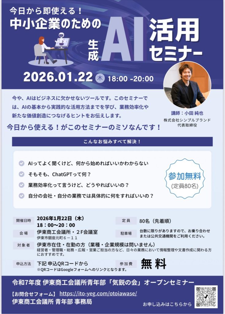 私が所属している伊東商工会議所青年部「気鋭の会」でAIセミナーを開催します。