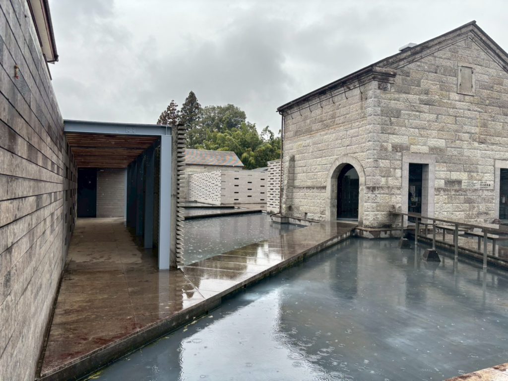 館内は複数の建物で構成されていて、古い石蔵と新しい建築がゆるやかにつながっています。屋内と屋外の境界があいまいで、歩いていると自然に空間が切り替わっていく感じ。この「連続する体験」がすごく心地いいんですよね。